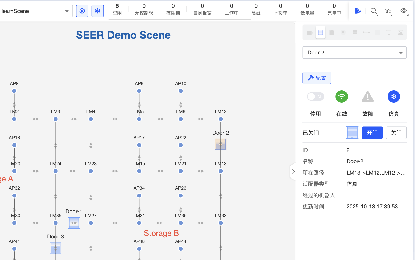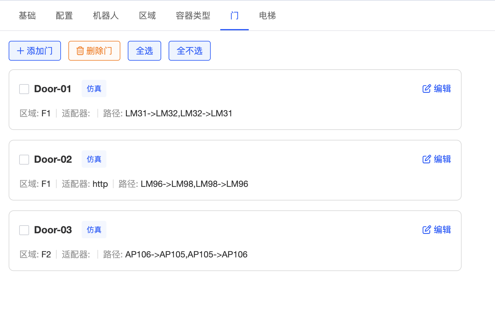 支持在场景中配置多个门,当配置完毕,卡片上可以看到门所处的路径和区域,如果是仿真,将有标识。