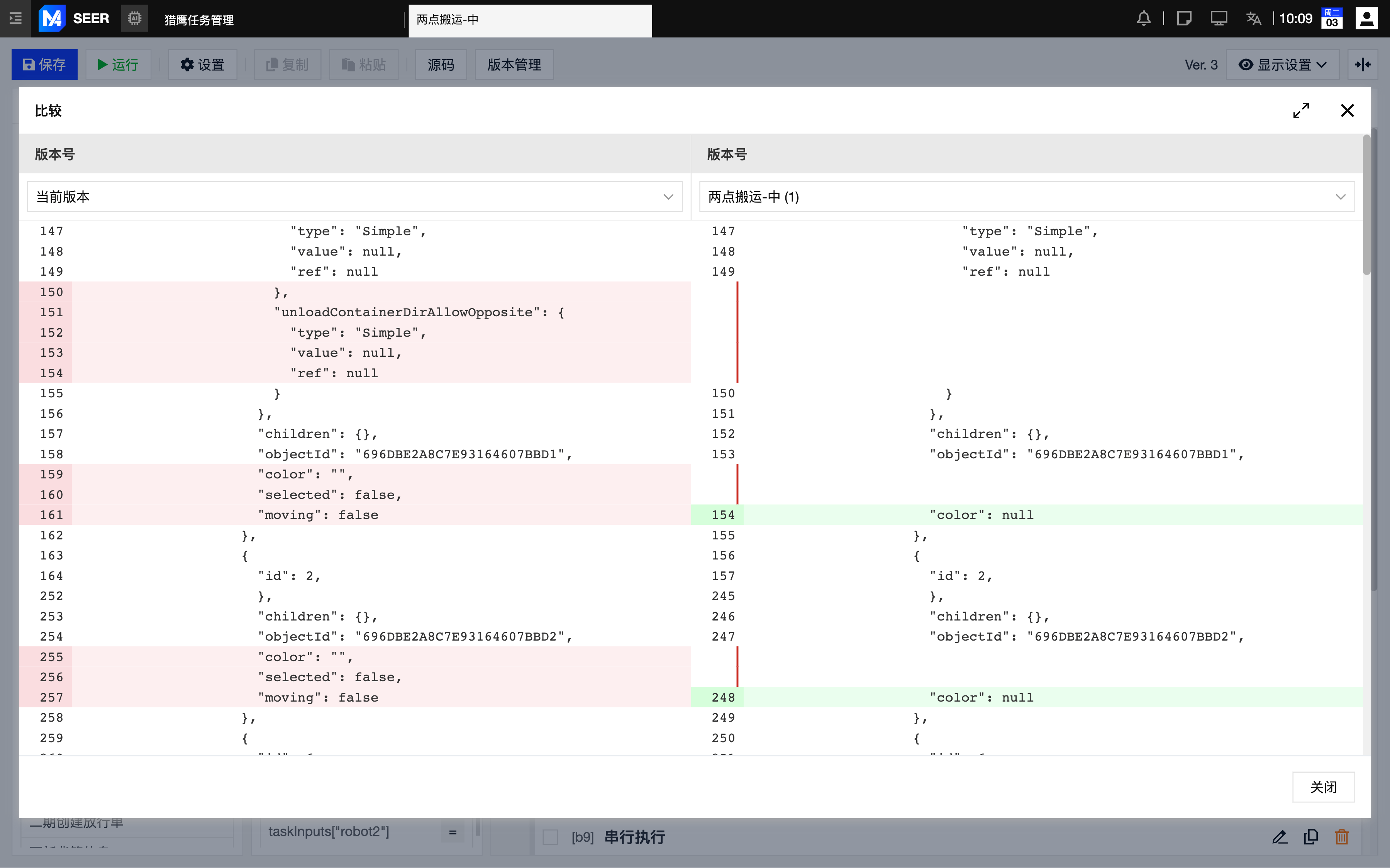 在版本管理中点击“比较”按钮,即可展示所选历史版本与当前版本之间的详细代码差异与内容对比。
